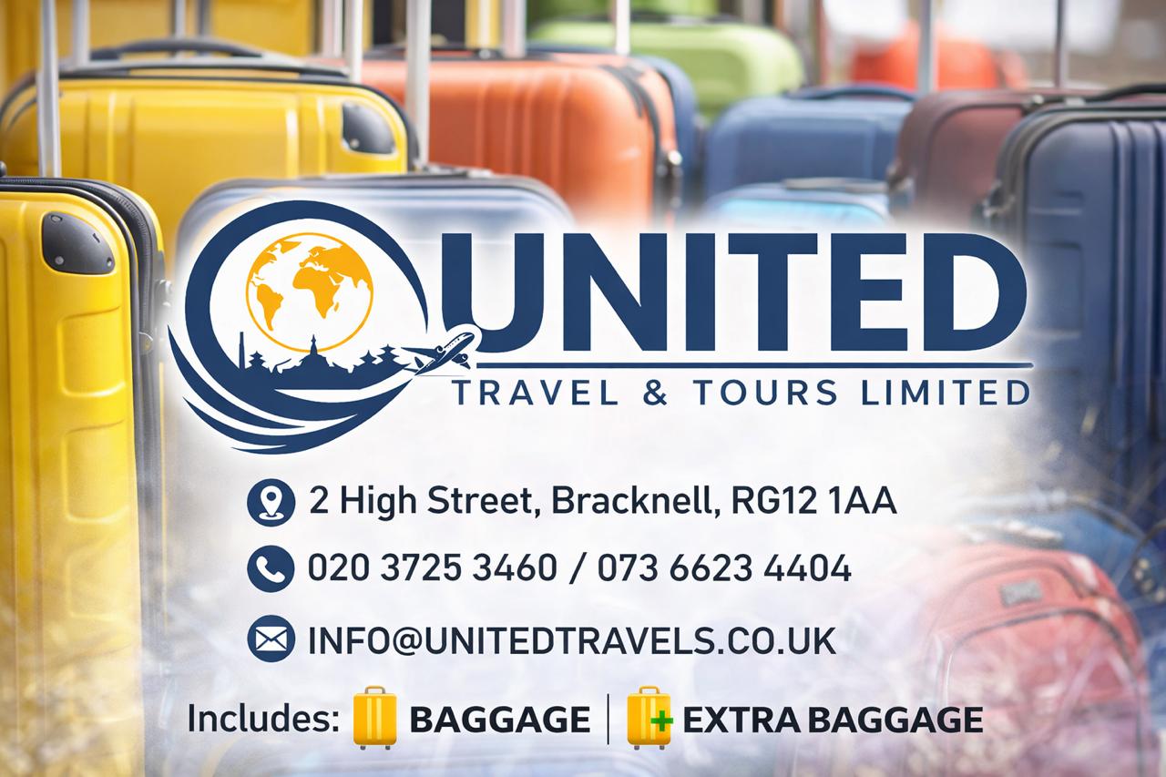 Planning to fly anywhere, with any airline? Contact United Travel and Tours Limited for fast, friendly help and great fares. We specialise in routes to India, Nepal, Pakistan, Bhutan, and Bangladesh, and we can also arrange worldwide tickets, baggage, and seat requests. Share your departure city, destination, travel dates, and passenger details, and we will check multiple airlines to find the best option for your budget. Clear advice, honest pricing, and reliable support before and after you book. Call us today on 020 3725 3460 or message us to get started. WhatsApp us anytime for a quick quote and availability.